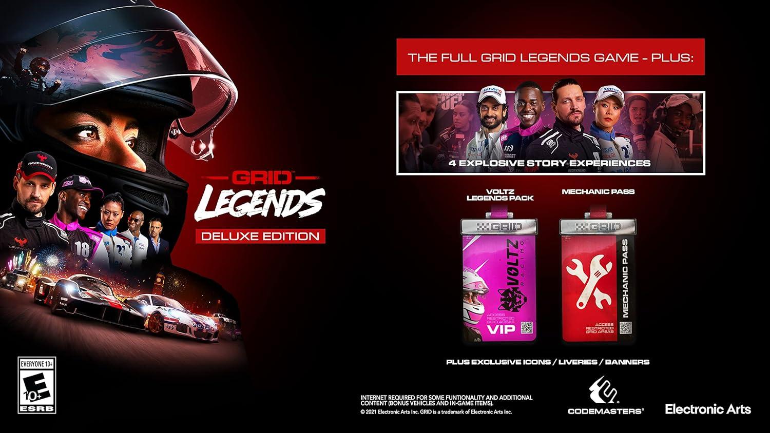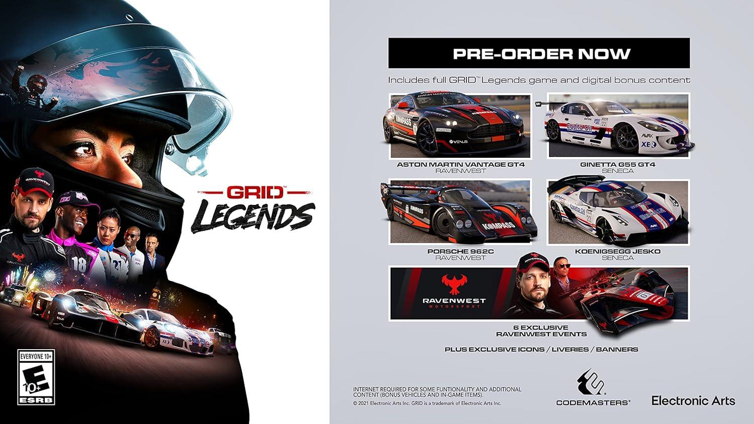 For the Racing Thrill-Seekers. GRID Legends delivers thrilling wheel-to-wheel motorsport and edge of your seat action around the globe. Create your dream motorsport events, hop into live multiplayer races, be part of the drama in an immersive virtual production story, and embrace the sensation of spectacular action racing. Jostle for position. Drive legendary cars to their limits. Feel the rush of incredible speed. Push your Nemesis on the track. Defeat your friends again and again… and don’t let them ever forget it! Play together with up to 21 friends in the most social and connected GRID ever, including cross-platform play, and cause havoc on the track. Make racing memories with a stunning variety of cars, new city locations such as London and Moscow, exciting event types, and create on-track enemies. Use the Race Creator to design adrenaline-fueled races to tear up with your friends, with event types like Elimination, electrifying Boost races, and the return of Drift. Want to race hypercars against huge trucks? Go for it! Be part of the spectacle of motorsport with our dramatic virtual production story Driven to Glory, or dive into our largest ever Career, featuring hundreds of exhilarating events. Pre-order GRID Legends today to access the GRID Legends: Seneca & Ravenwest Double Pack, which includes four cars (Aston Martin Vantage GT4, Porsche 962, Ginetta G55 GT4, Koenigsegg Jesko) to use throughout the game, exclusive career events and team icons, liveries and banners.