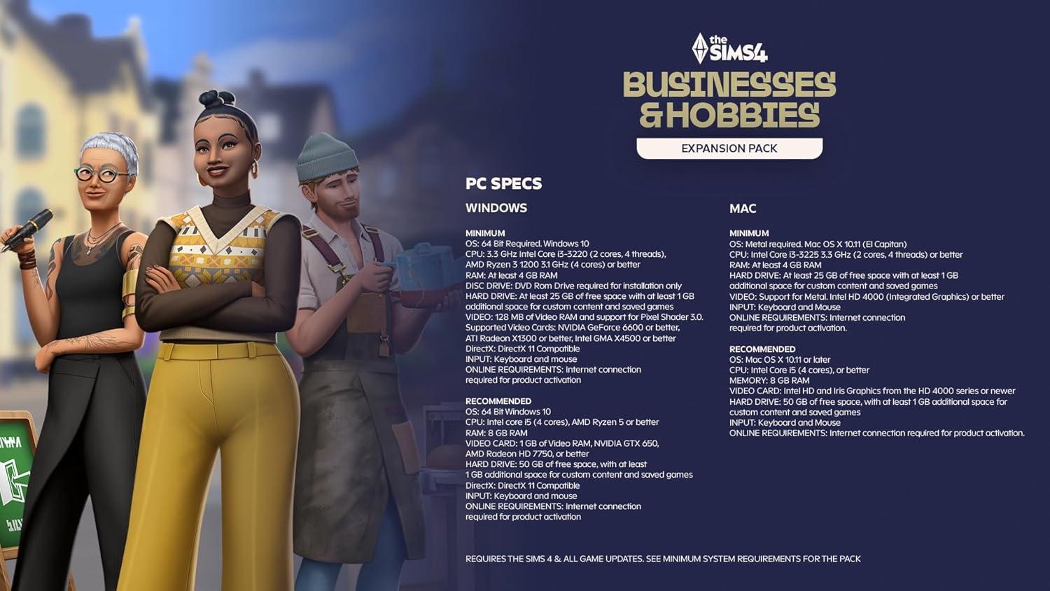 Pursue new skills and live a life of accomplishment in The Sims 4 Businesses & Hobbies Expansion Pack*. Make your home in Nordhaven — a world of opportunity where you can chase your dreams among a passionate community. Create wearable art with the new Tattooing skill, and even earn Simoleons for it. Or, craft functional pieces with the new Pottery skill and charge for lessons as you improve. Savvy Sims can turn their wildest dreams into profitable businesses, so use your imagination to create something special. Run your business out of your home, hire employees, decide how to charge, and make the rules! *Requires The Sims 4 & all game updates. See minimum system requirements for the pack.