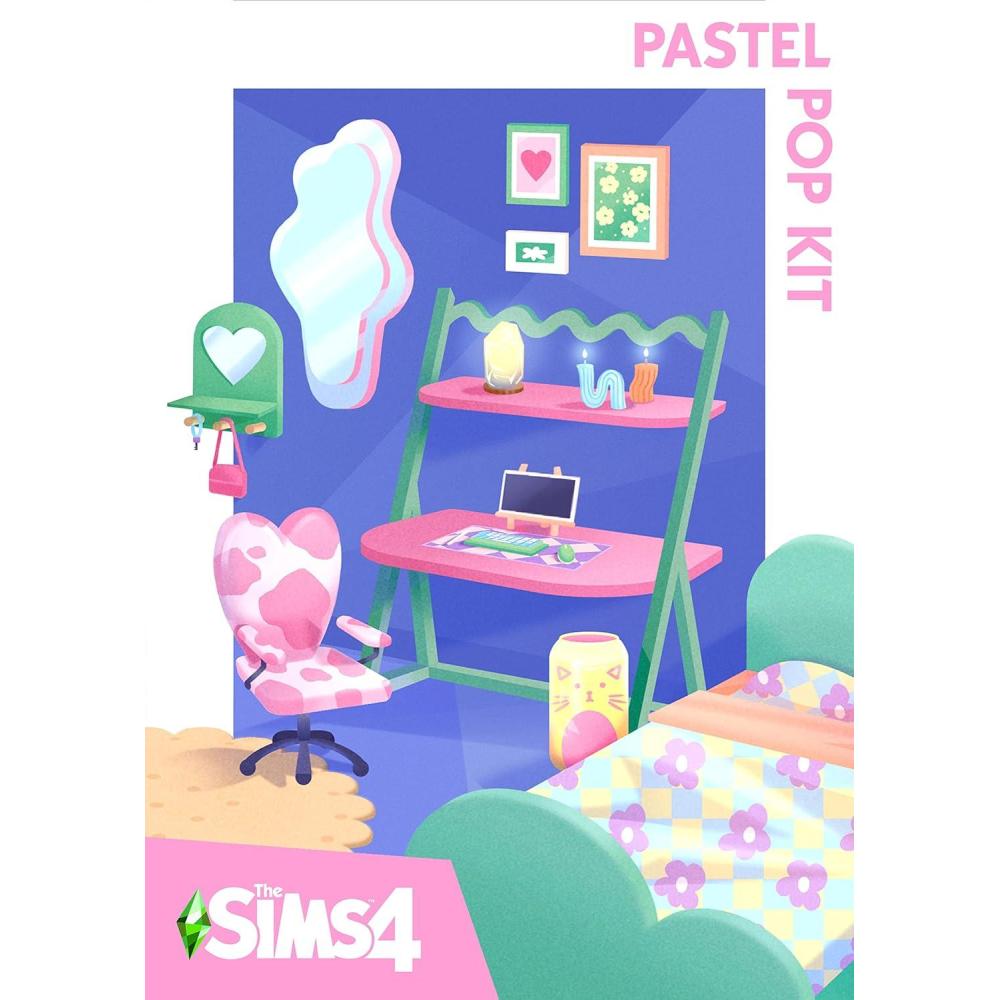 Design a soft and playful bedroom that’s perfect for daydreaming with The Sims 4 Pastel Pop Kit*! Blend simple and psychedelic with quirky pastel prints, irregular shapes, and vintage vibes. This collection is perfect for your Sim’s dorm, bedroom, or studio apartment.