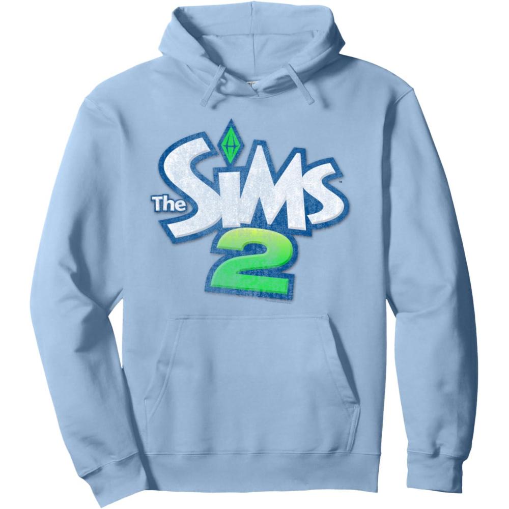 The Sims Retro Distressed The Sims 2 Logo Video Game Pullover Hoodie(Dusty Blue)